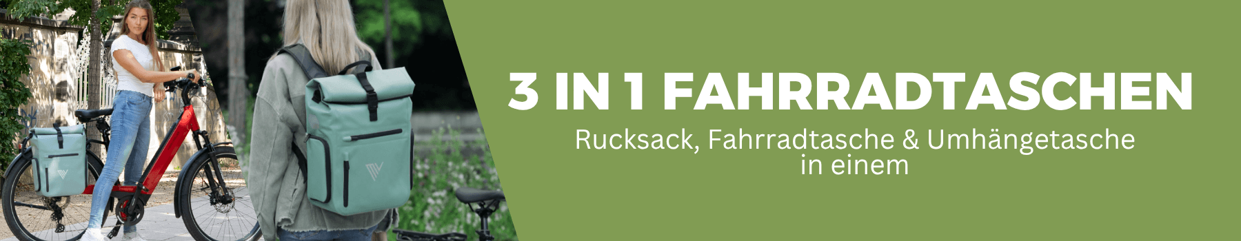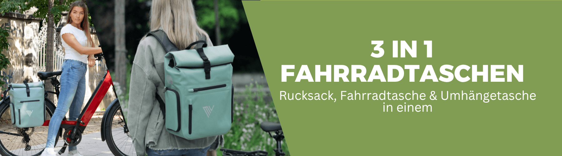 Der Allrounder unter den Fahrradtaschen, die 3in1 Fahrradtaschen von MiVelo sind Rucksack, Fahrradtasche und Umhängetasche in einem. Egal wohin es geht und egal wie lange der Ausflug dauert, mit unseren 3in1 Taschen bist Du bestens ausgestattet!