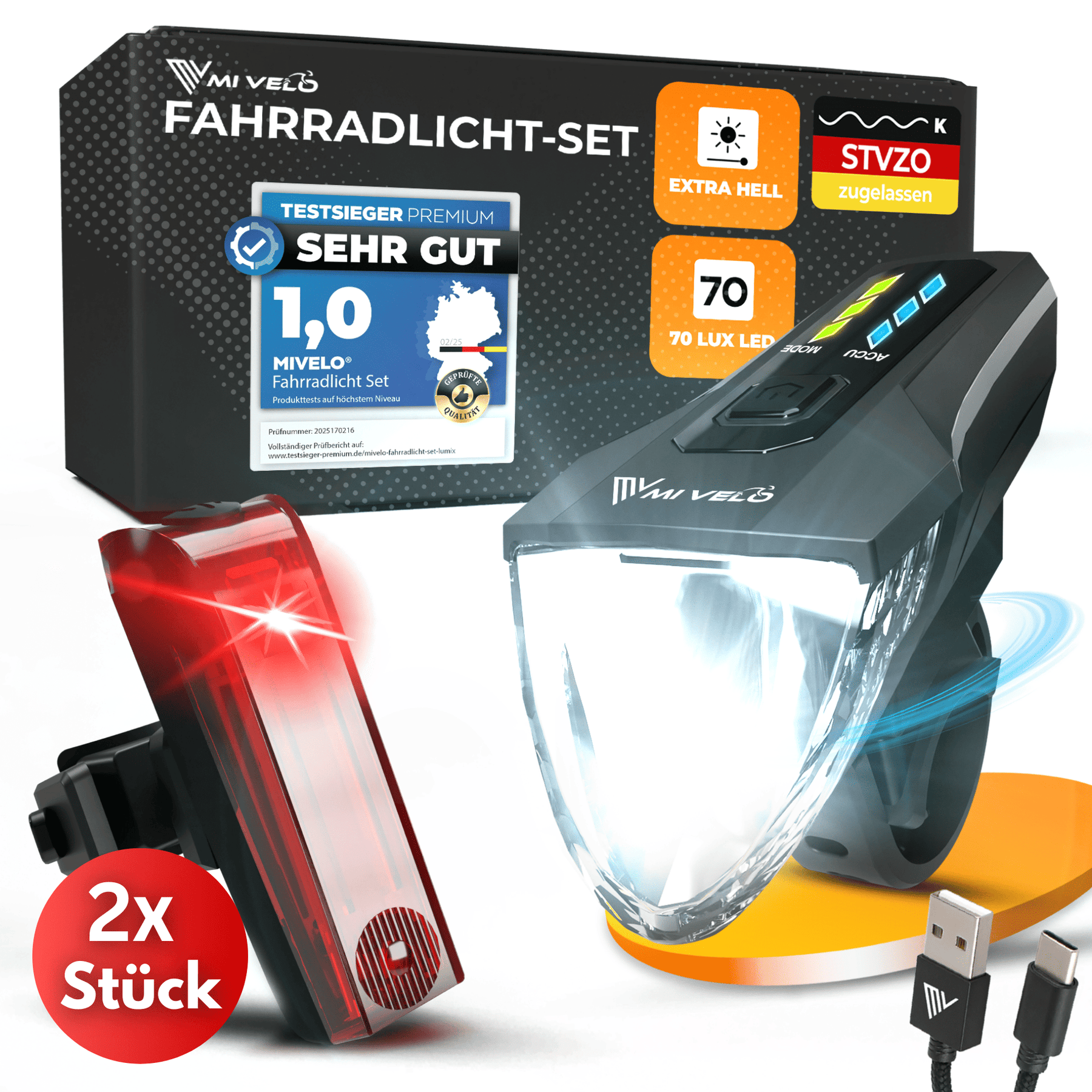 Fahrradlicht Set LED aufladbar mit 70Lux "LUMIX ONE"
