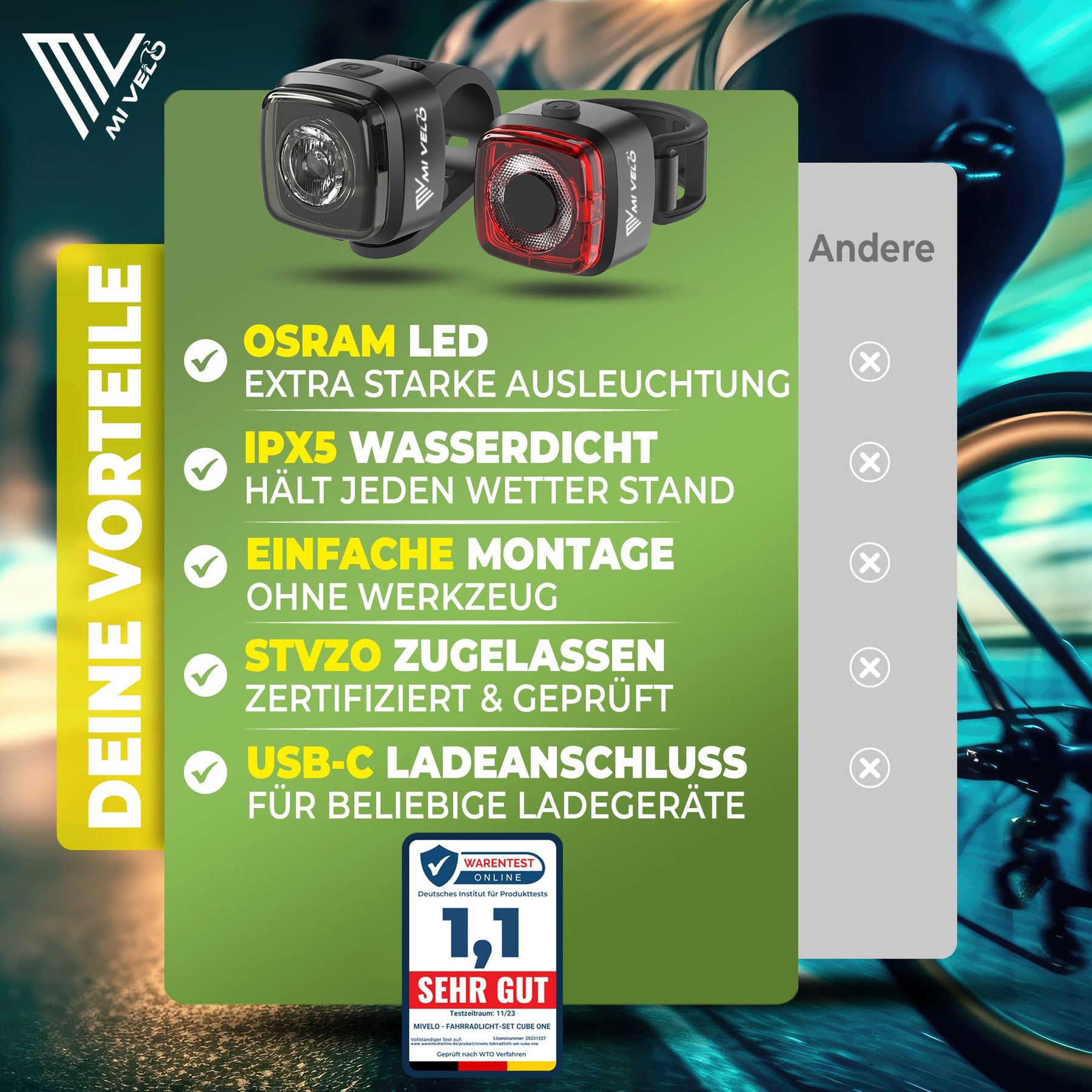 Speichen und Lichter sehr hochwertig und gut anzubringen.